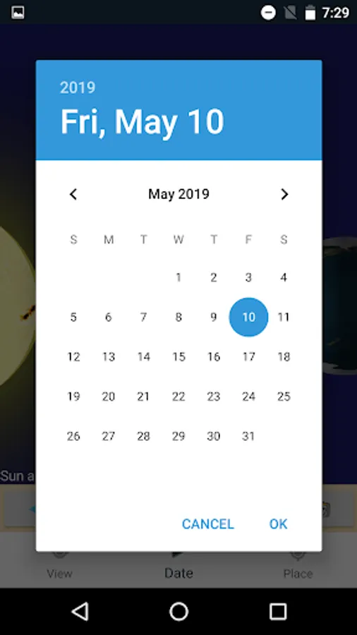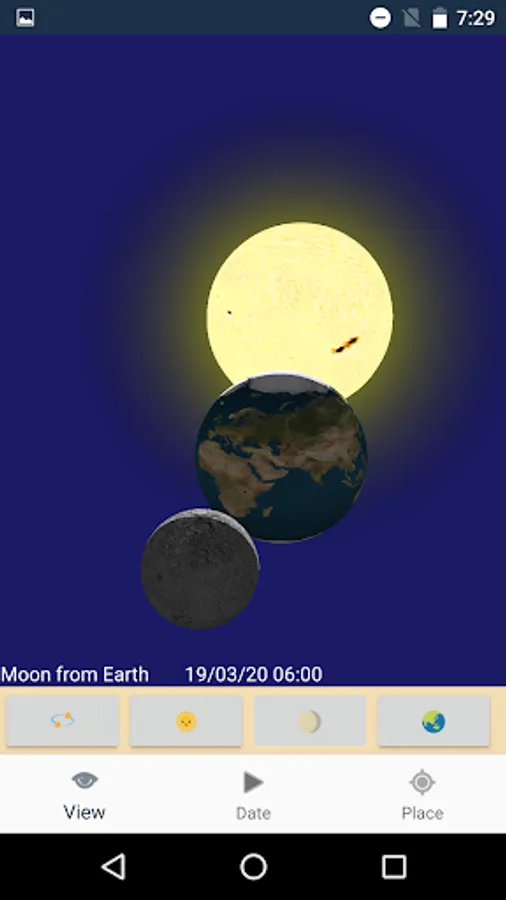 This app visualizes the Sun, Earth, and the Moon position in the sky.
