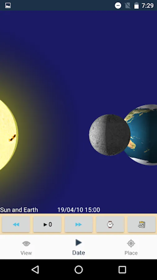 You can see the rotation and revolution of the Sun, Earth, and the Moon. You can also change playing speed, play with fast forward and rewind.