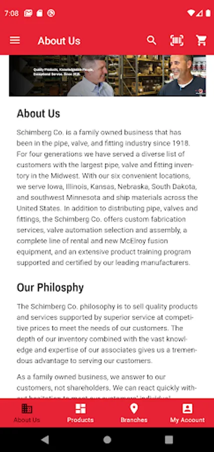 Schimberg Co. is a family owned business that has been in the pipe, valve, and fitting industry since 1918. For four generations we have served a diverse list of customers with the largest pipe, valve and fitting inventory in the Midwest. With our six convenient locations, we serve Iowa, Illinois, Kansas, Nebraska, South Dakota, and southwest Minnesota and ship materials across the United States. In addition to distributing pipe, valves and fittings, the Schimberg Co. offers custom fabrication services, valve automation selection and assembly, a complete line of rental and new McElroy fusion equipment, and an extensive product training program supported and certified by our leading manufacturers.