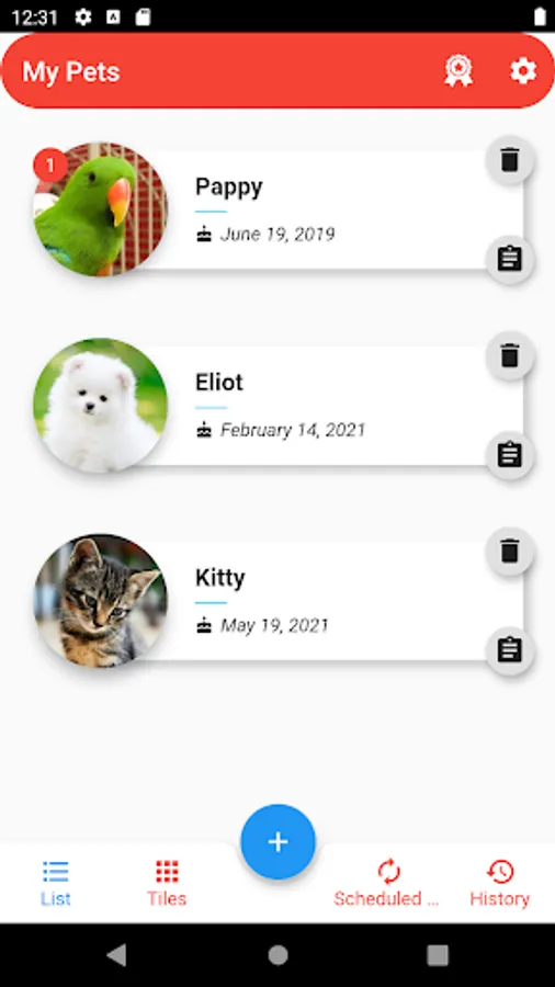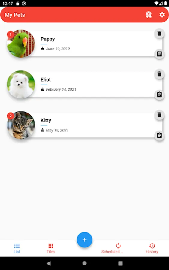🐾 Tiles - shows all your pets and allows you to execute scheduled activities