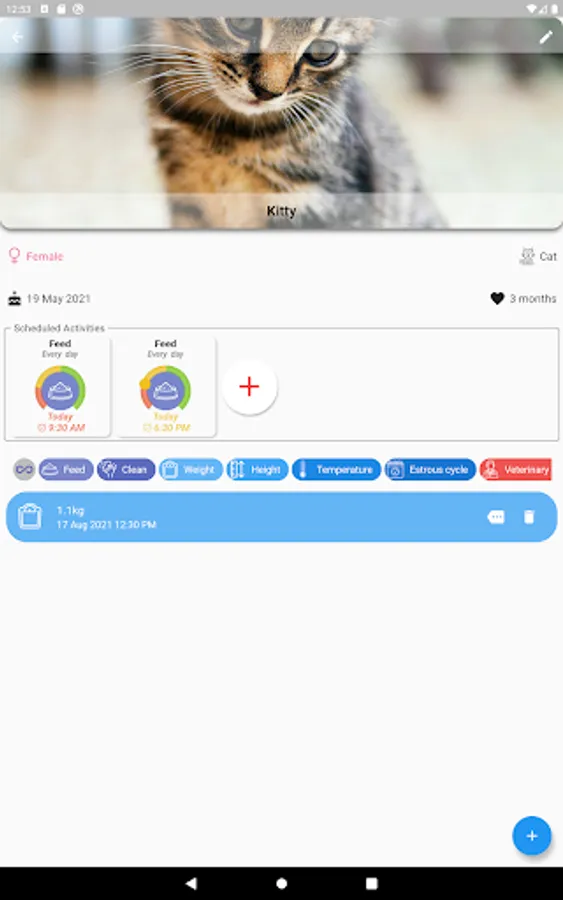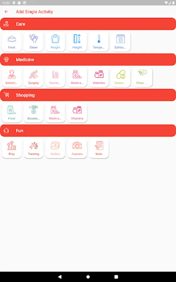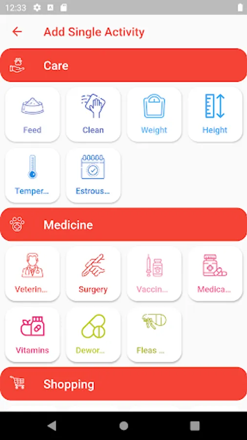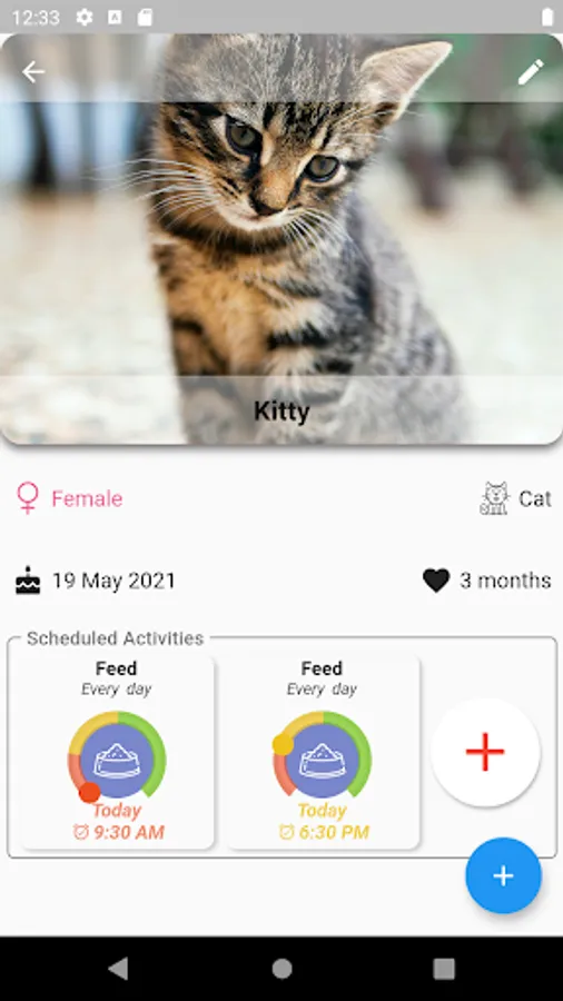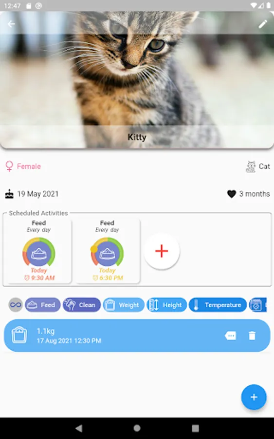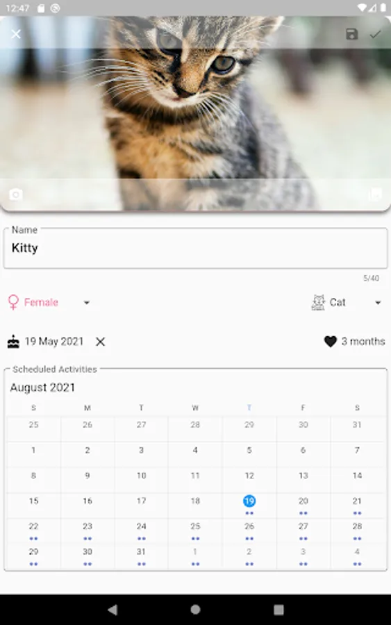 Pet care diary app allows you to log your pet's all activities e.g. feed, vaccination, veterinary visit, buying food, making pictures, taking notes and many others! The diary will show you if you have scheduled activities - either overdue, future or due today. You will be able to execute these activities. Each executed activity is logged to the pet's diary. You can easily review the chronology and filter it by the activity's types. Besides scheduled activities at any given moment you can add a single activity for every pet.