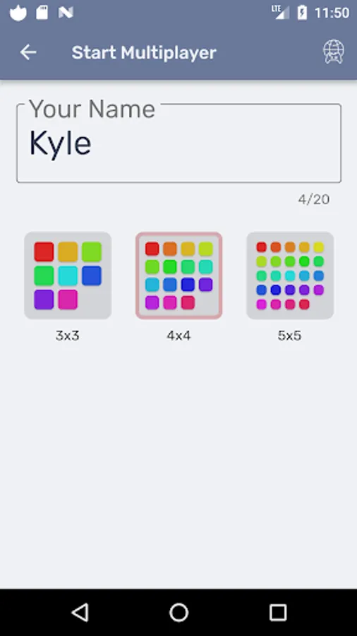 ✓ Type your name and select a board size