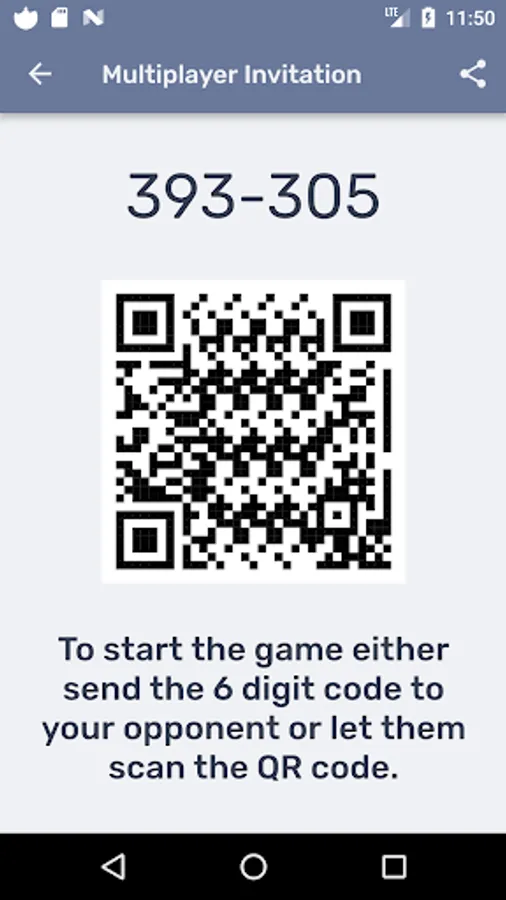 ✓ Either send the game code or allow your opponent to scan the QR image - that's it!