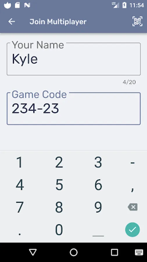 This is where the real fun begins! Just create a game, either share the game code or allow your opponent to scan the QR image and that's it - the game begins!