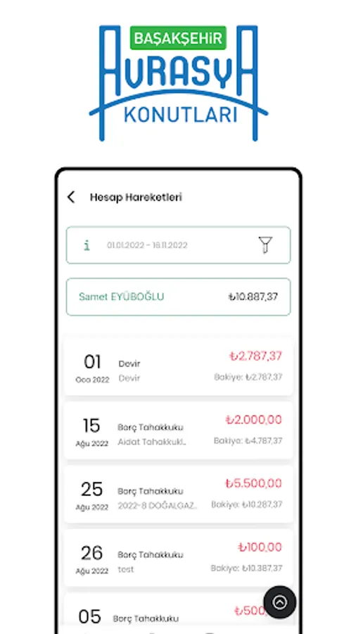 • Online Payment; Dues, Heating, Investment, Hot water etc. Viewing the amounts related to expense items such as and making your payments easily with your own Site Management Account,