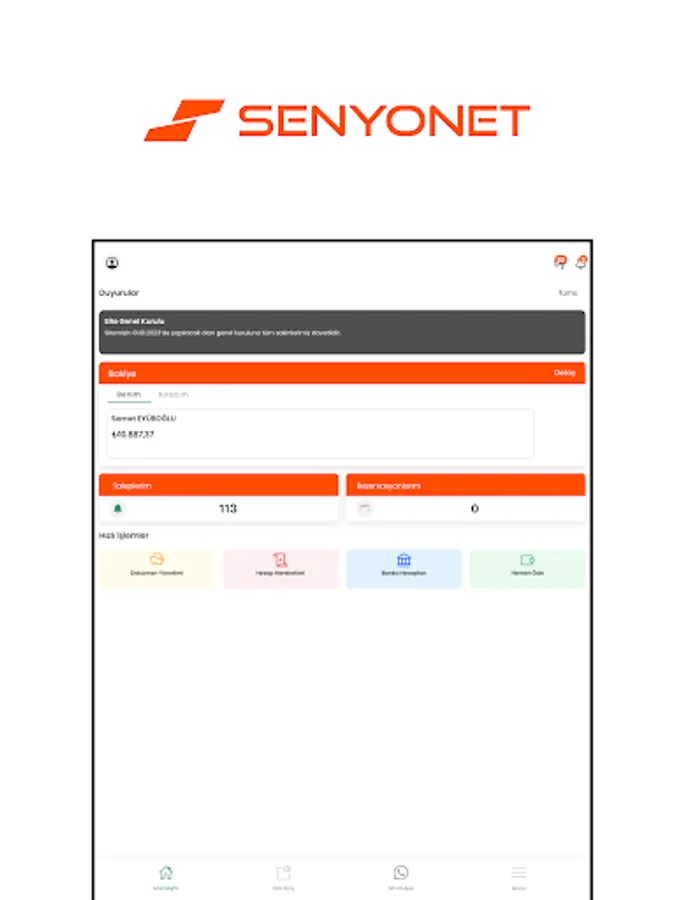 Transactions you can do via the Senyonet Site, Office and Mall Residents mobile application;