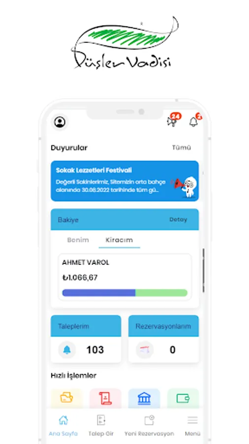Thanks to this application, the residents of the site can easily perform many operations such as the features listed below, without the need to go to the management offices.