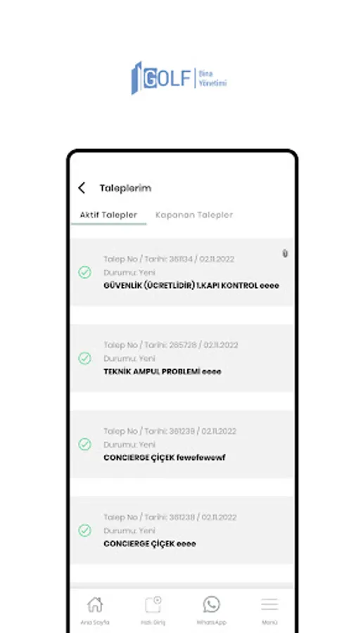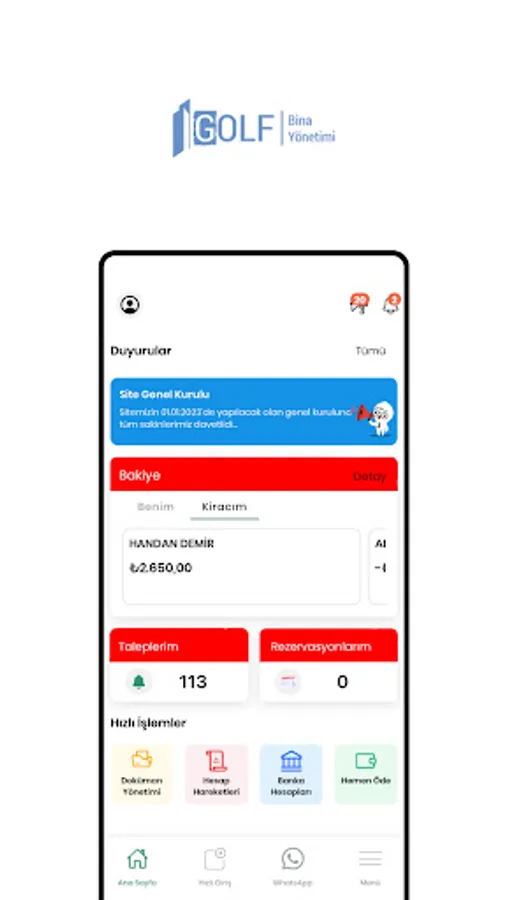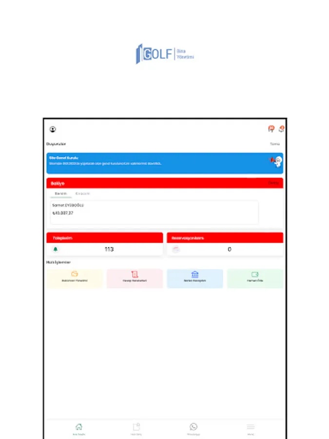 Thanks to this application, the site residents can easily provide many transactions such as the features listed below without going to the management offices.