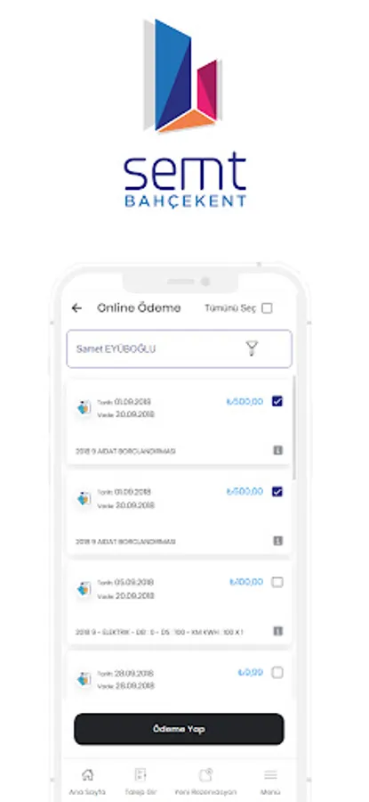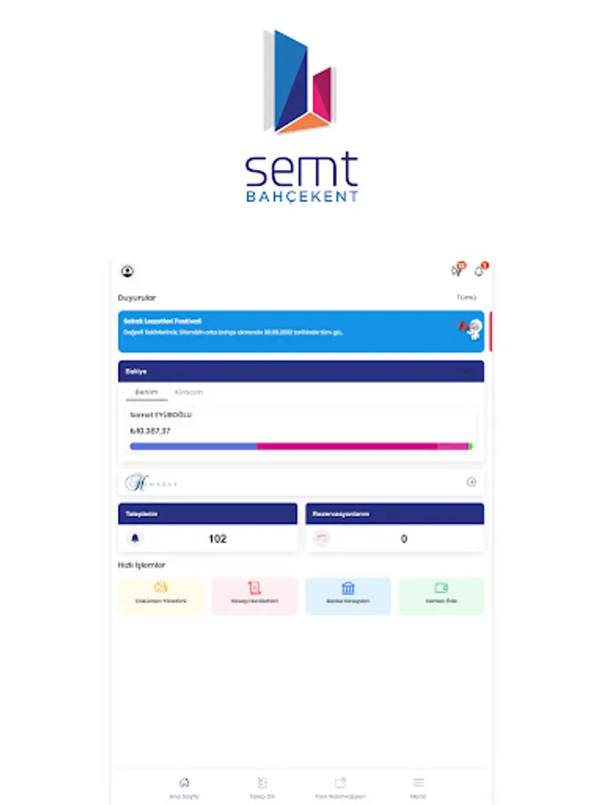 • Online Payment; Dues, Heating, Investment, Hot water etc. Viewing the amounts related to expense items such as and making your payments easily with your own Site Management Account,