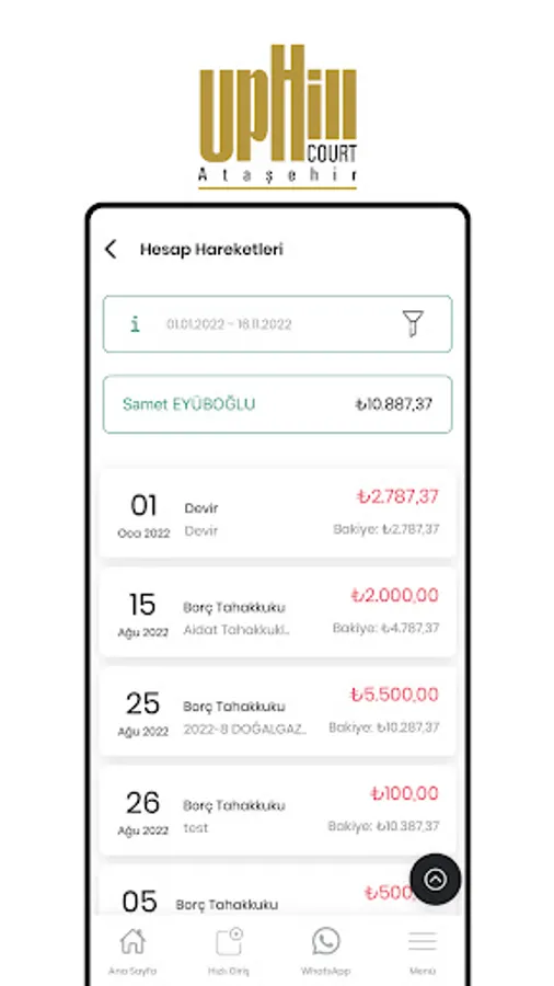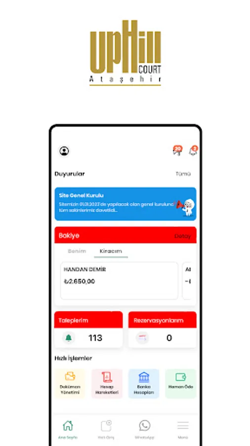 • Online Payment; Dues, Heating, Investment, Hot water etc. Viewing the amounts related to expense items such as and making your payments easily with your own Site Management Account,
