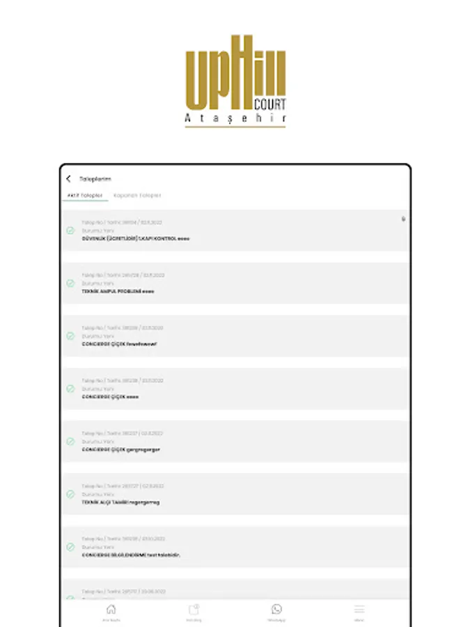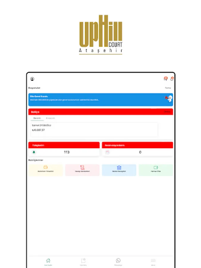 Thanks to this application, the residents of the site can easily perform many operations such as the features listed below, without the need to go to the management offices.