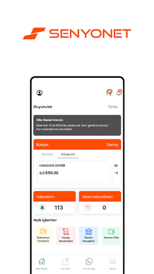 Senyonet Sites, Office and Shopping Center Residents are things you can do through the mobile application;