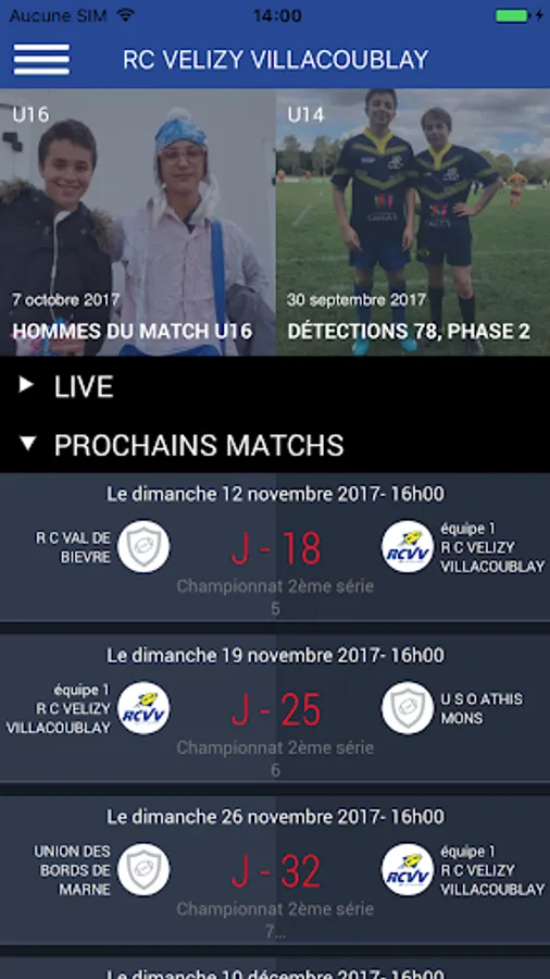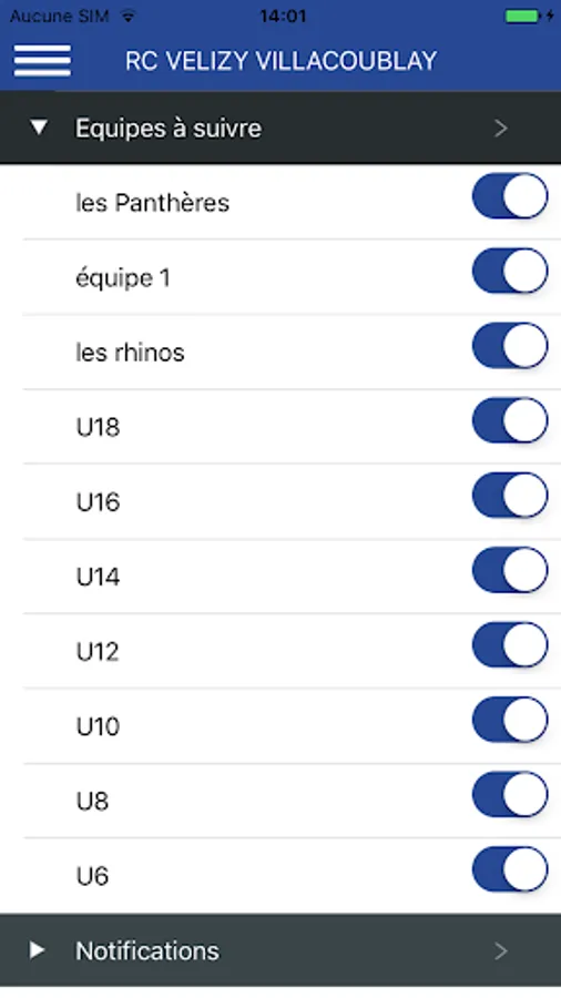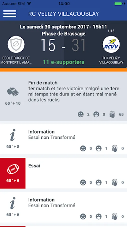 The application RC Velizy Villacoublay you can follow all the news of your favorite club. You can subscribe to your favorite teams (team 1, junior, U18, female, ...) and live track every sporting event subject to a Live. To you support your club: the application allows you to interact with the team to cheer or hiss sequences of play.
