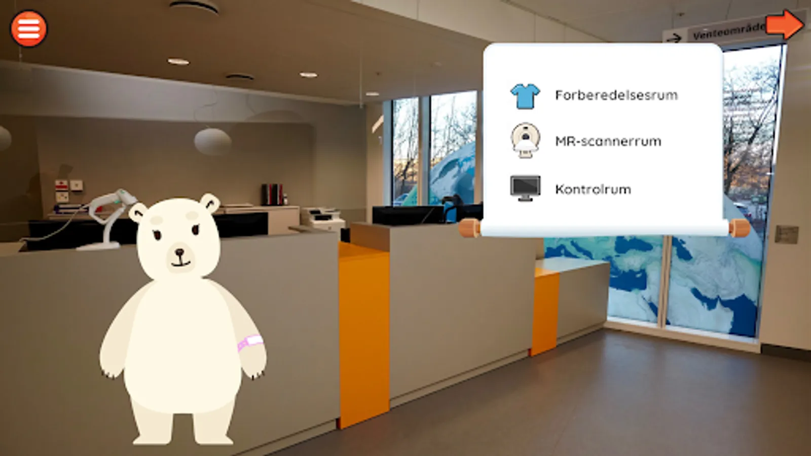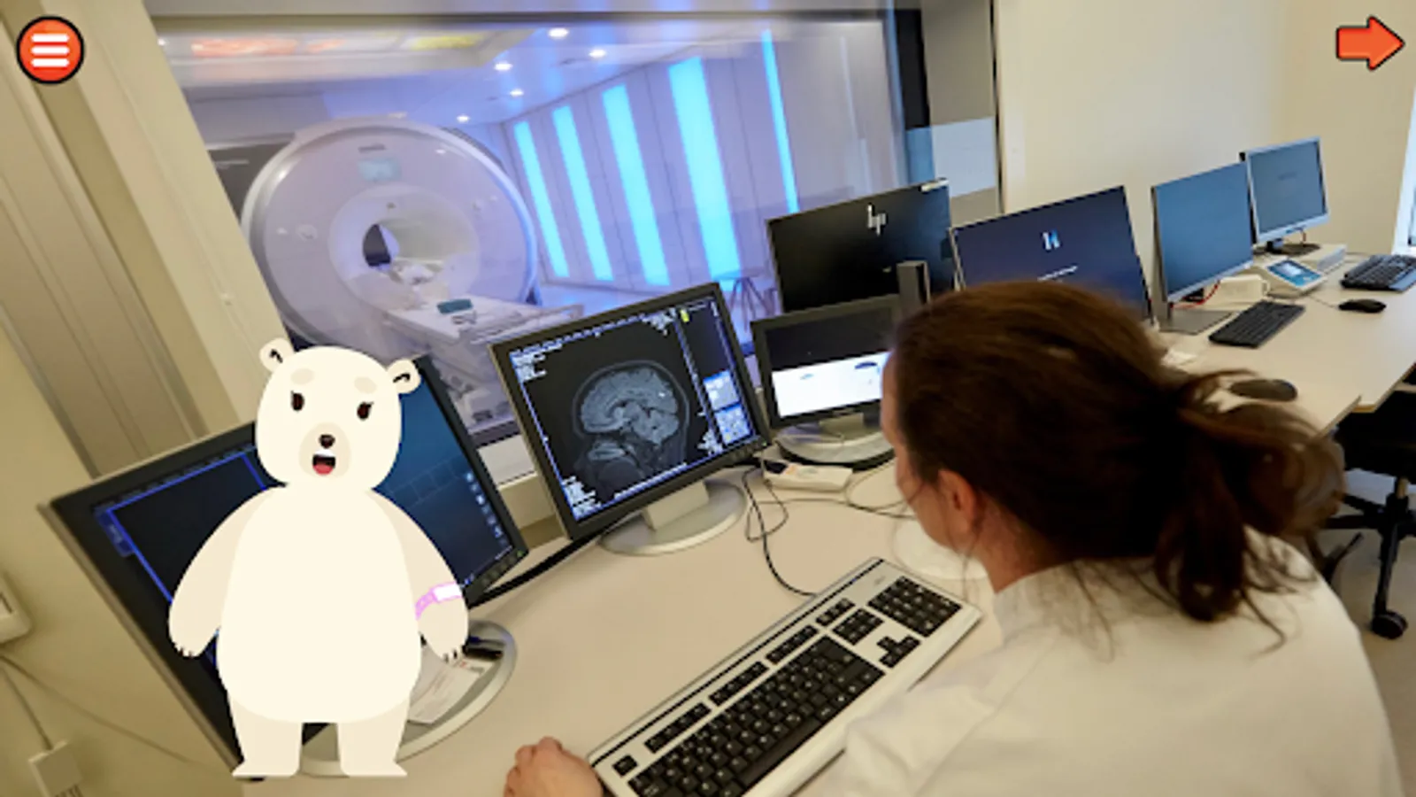 The bear Theo / Thea guides you through the app and shows why it is exciting to be scanned. You can choose between a 2D version or 3D version. However, the 3D version requires that you have VR glasses.