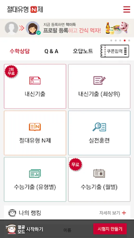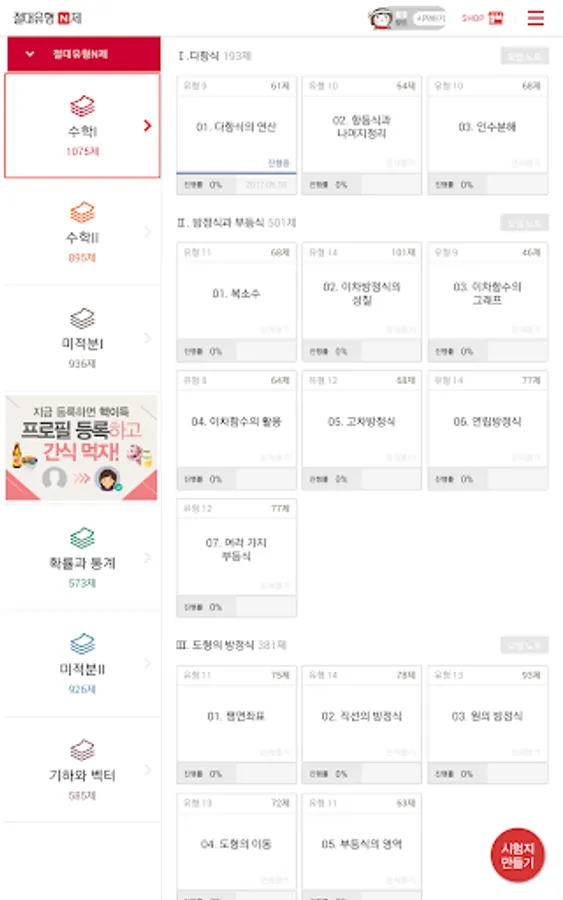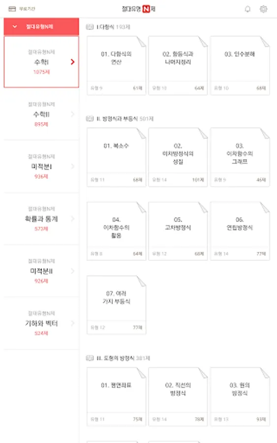 절대유형 N제 앱 하나로 수학 공부를 완벽히 끝낼 수 있습니다!
