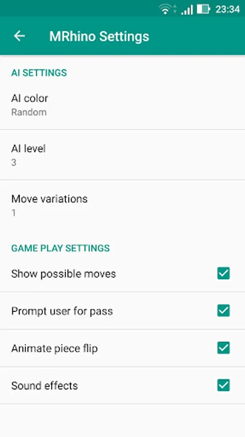 MRhino is an Othello/Reversi game which you play against AI. AI levels range from easy to very hard suitable for wide range of audience, from beginners and experienced players.