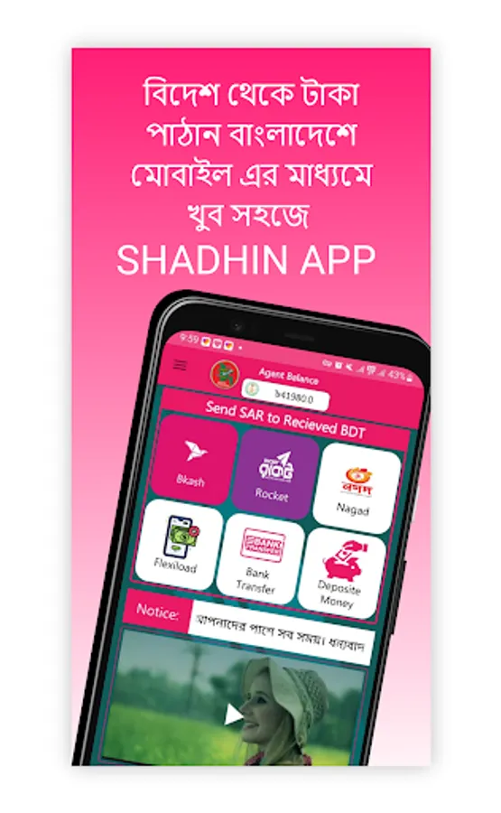 Shadhin Bangladesh Apps are the easiest way for expats to send money from Saudi Arabia to Bangladesh Expatriates in Bangladesh can easily send money from Saudi Arabia to Bangladesh through this app, 24 hours a day, 7 days a week. Bkash is in everyone's home. Through this app, you can easily send Bkash , Rocket , Nagad to your loved ones by converting Saudi Riyal to Bangladeshi Taka at any bank with mobile recharge. Good luck to all expatriate dears.