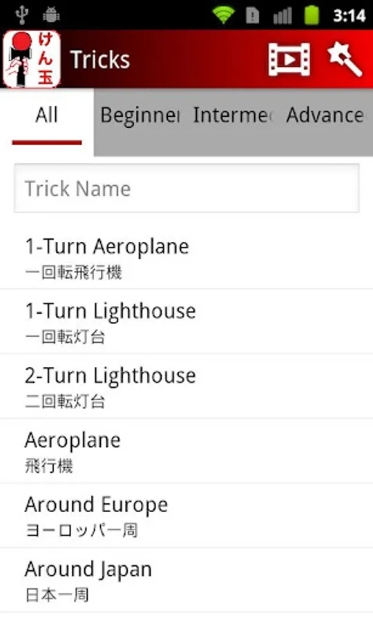 -A trick reference library of 130+ tricks, with names in English and Japanese. From the basic Big Cup, to Aeroplane, Orbit, all the way up to "Reverse", "Hanging", and "Fast Hand" tricks, and much more. Keep a count of how many times you have done each one.