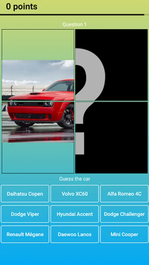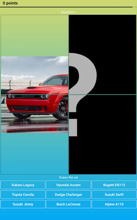 🚕 Arcade. Try to guess the brand and model of the car from the part of the photo. The fewer parts of the image are open, and the faster you will answer, the more points you will earn.