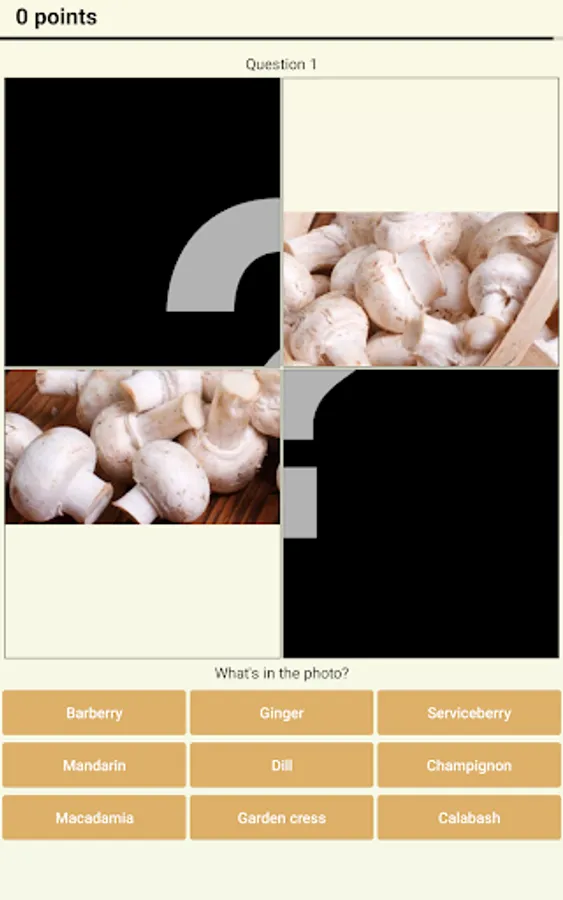 Free educational photo-quiz about plants: fruits, vegetables, mushrooms, berries, herbs, nuts, cereals, seeds, grains, spices. Thanks to this game, you will test your knowledge of botany and learn many new exotic vegetables and fruits from different parts of the world. Learn more about them with the built-in Wikipedia!