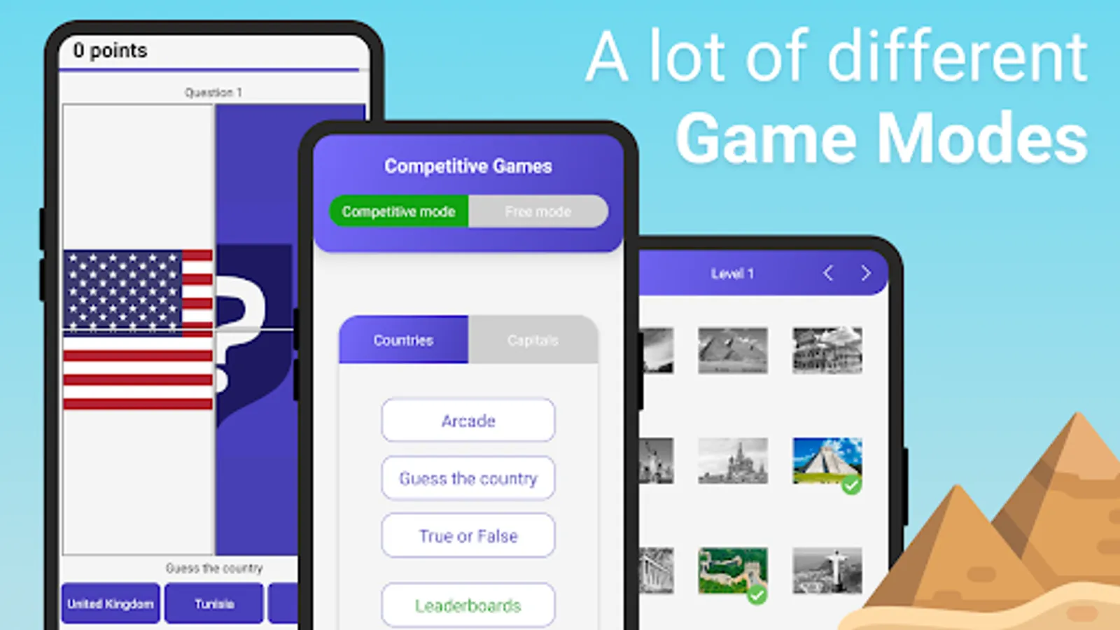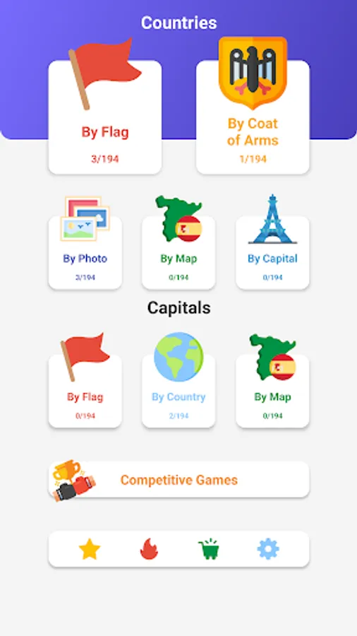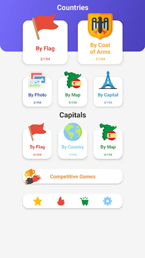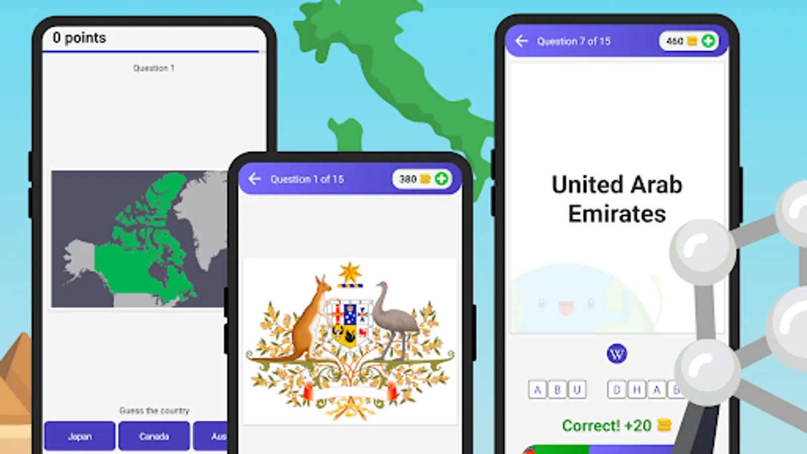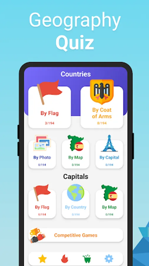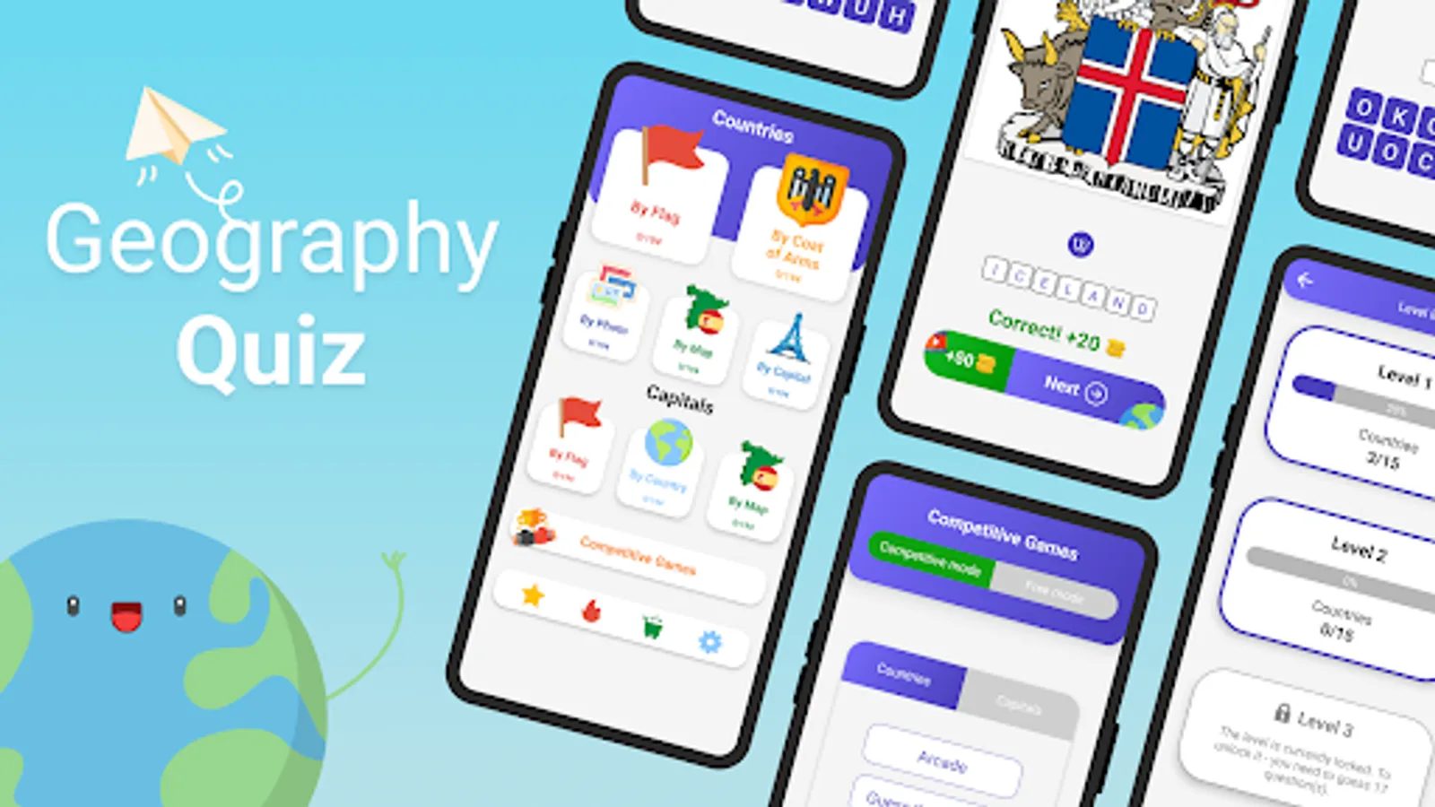 Embark on an adventure of discovery with our game! Set in an interactive universe, this app invites you to explore geography, trivia, quizzes, and puzzles, revealing intricacies of countries, cities, maps, and flags across the globe. 🌍