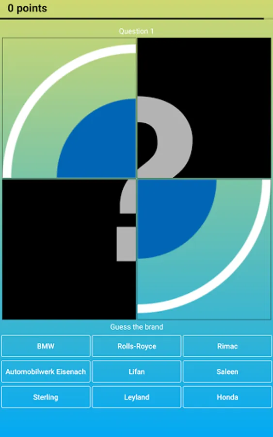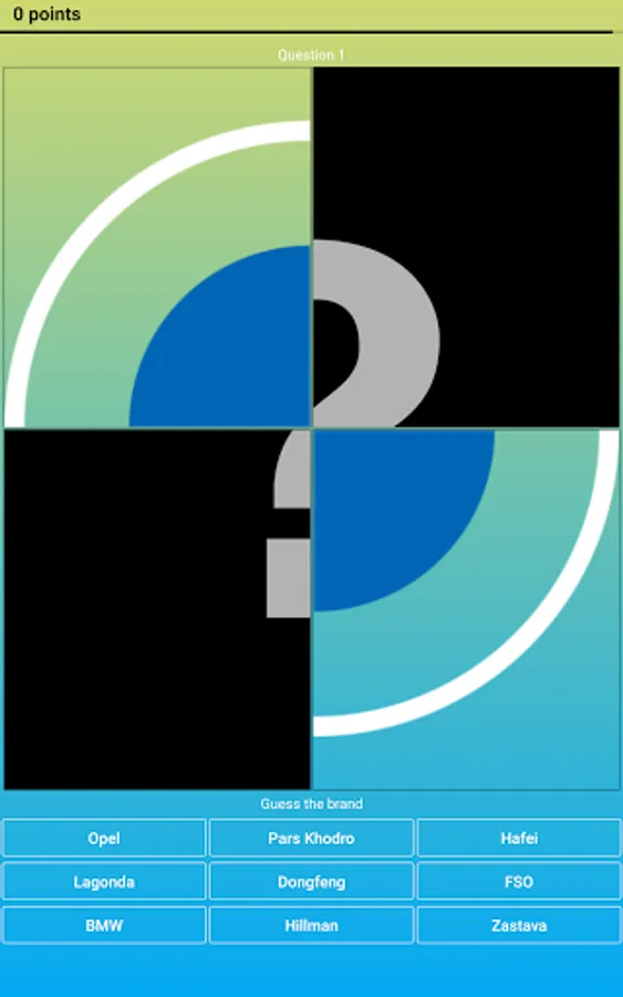 The principle of the quiz is very simple! The car logo or a part of it appears on the screen, and you need to make the name of this brand from the letters presented.