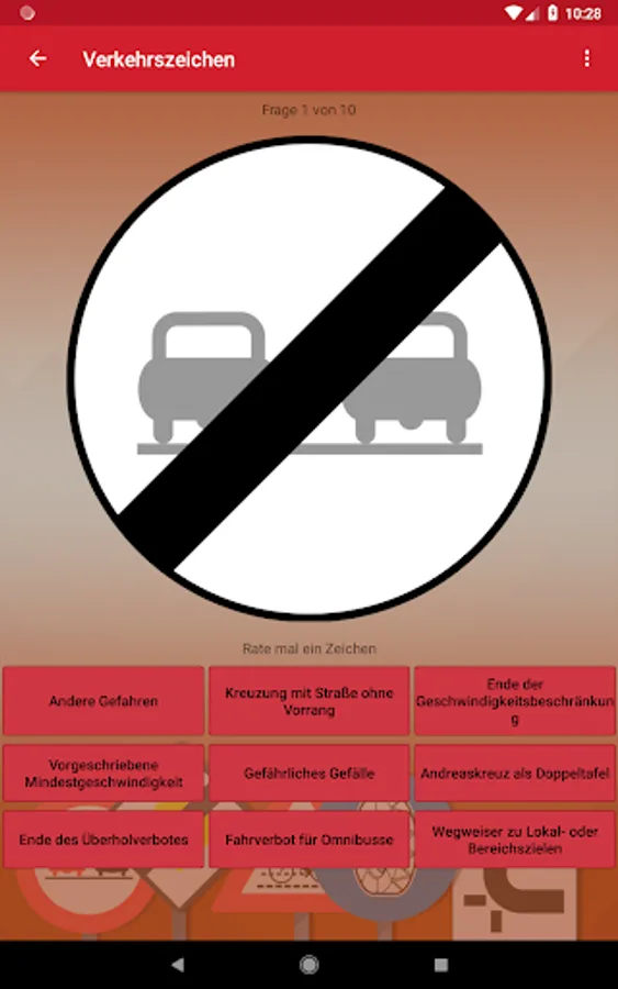 This trainer quiz "Traffic Signs of Austria" will help you to quickly and easily learn all traffic signs in one game form. Our quiz will be useful for the students of driving schools who will take the driving test and for the experienced drivers to refresh their knowledge of the Road Traffic Act.