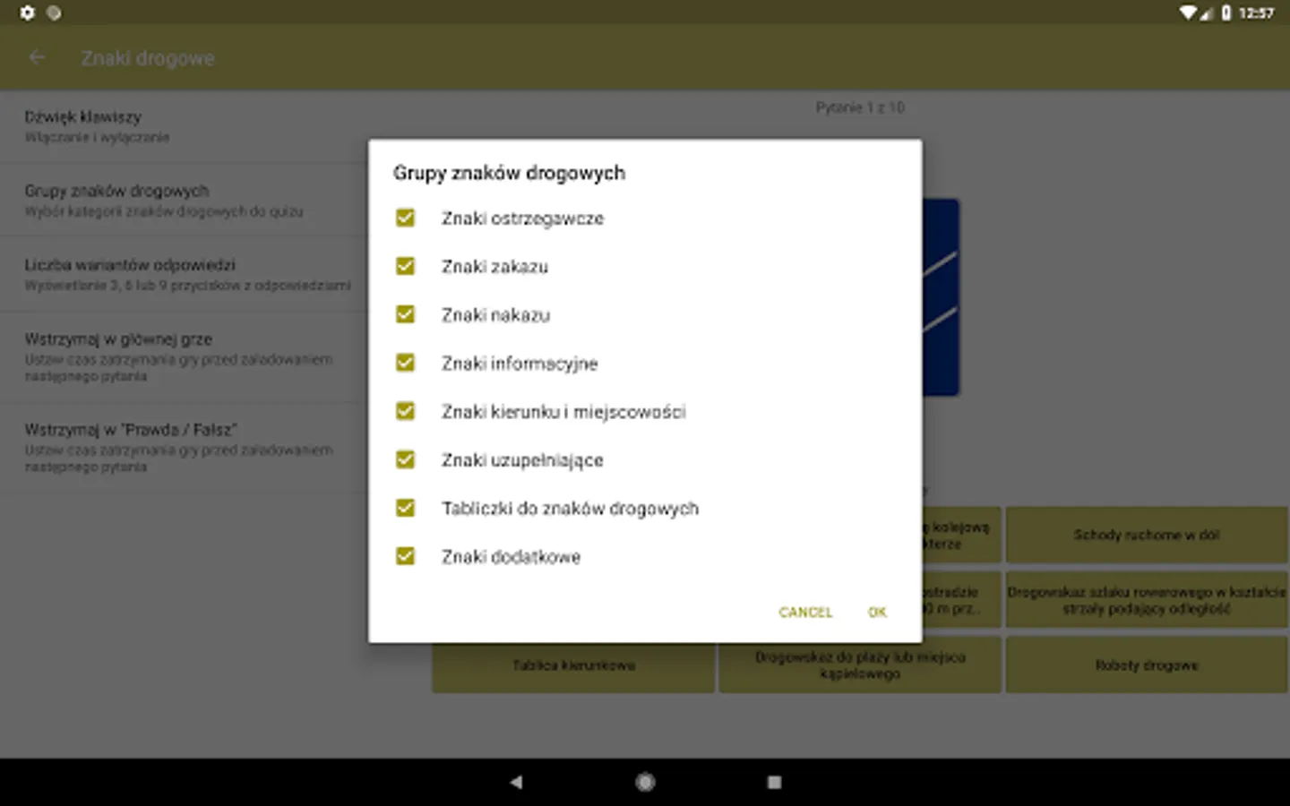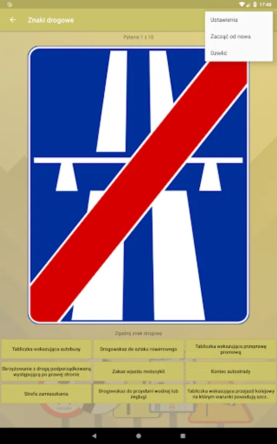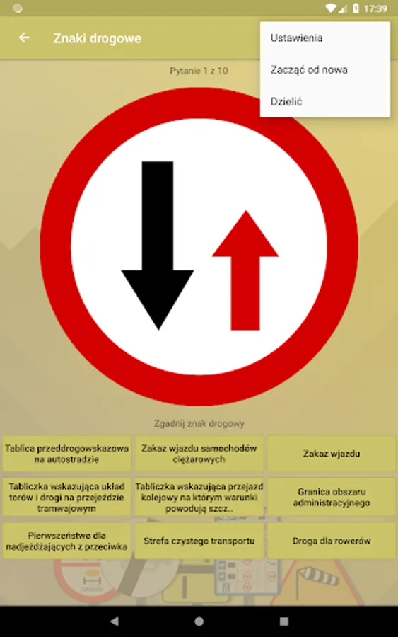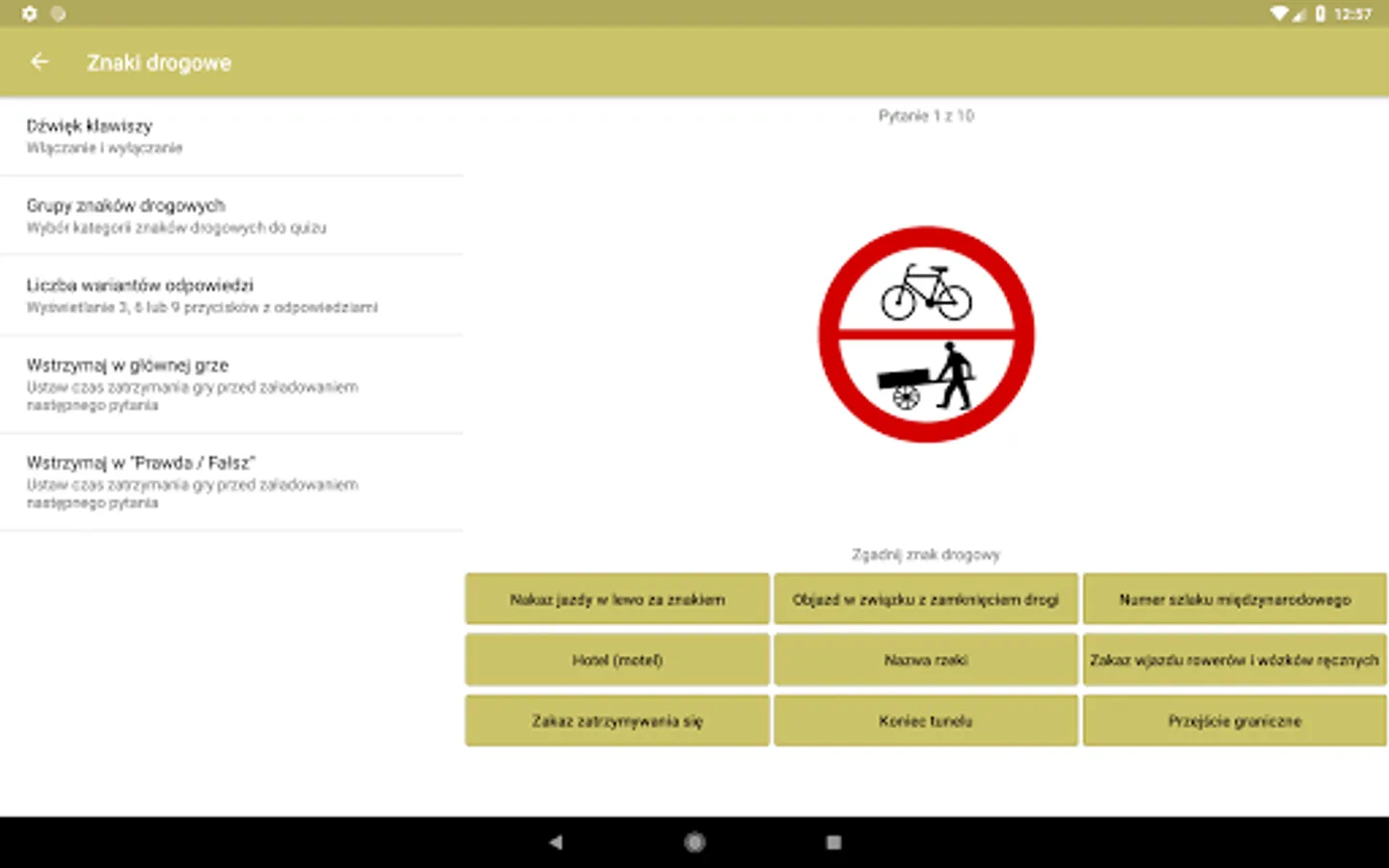 Trainer-quiz for learning road signs in Poland. This mobile application will help you learn or refresh knowledge about all road signs in the form of a game, and will be useful to a wide range of users - from driving school students to specialists with extensive driving experience.