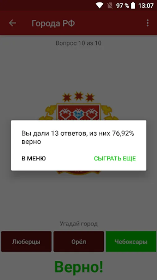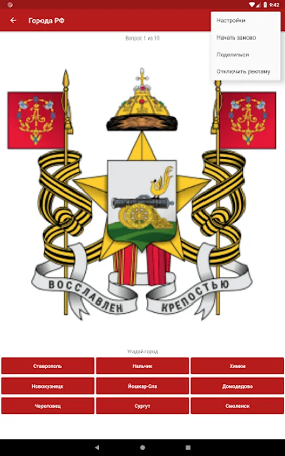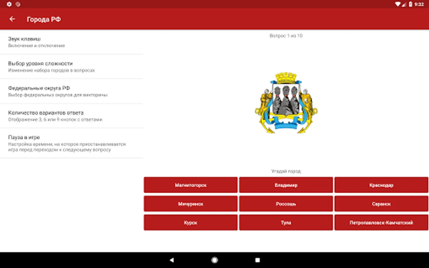 Test quiz on the emblem of the Russian Federation cities. In this application you will be able to playfully explore and learn something new about Russian cities.