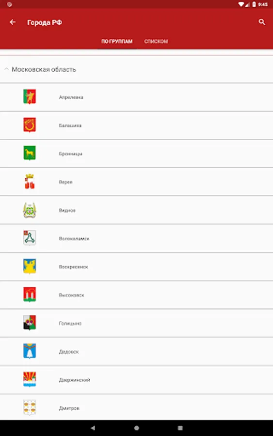 * Directory of cities and their coats of arms, where you can see not only the image of the emblem, but the date of foundation of the city, it belongs to the different provinces and regions, as well as the approximate number of people;