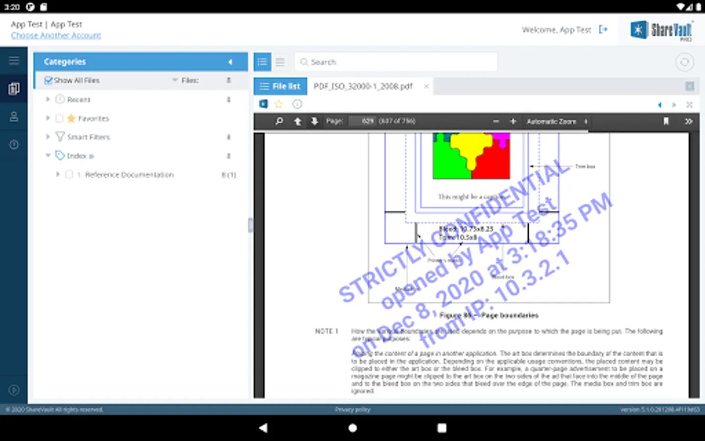 • Integrated Secure Document Viewer: ShareVault's Android secure document viewer is built-in to ShareVault for Android, and provides the full suite of ShareVault security and tracking features, while providing a fast, smooth and accurate document viewing experience.