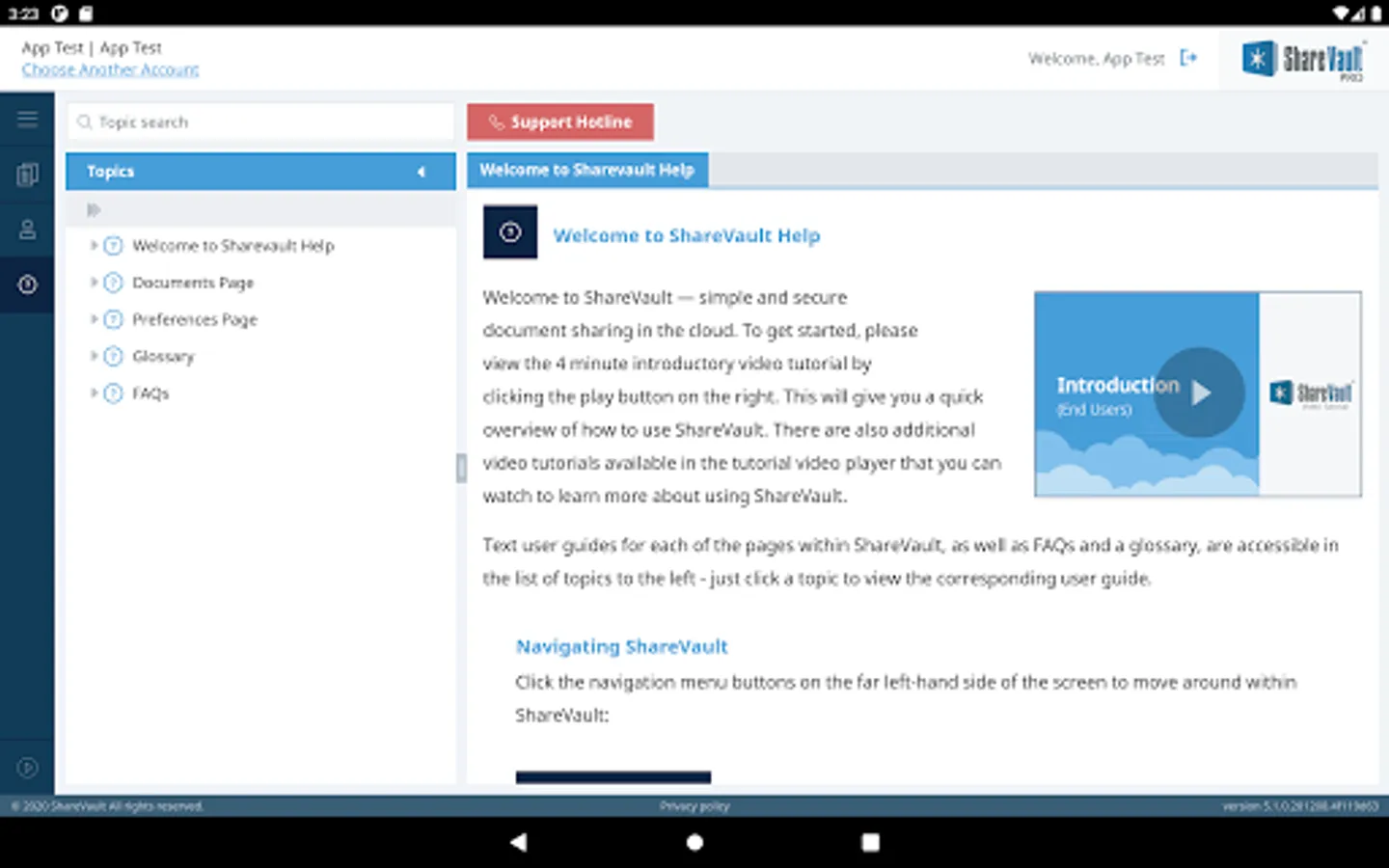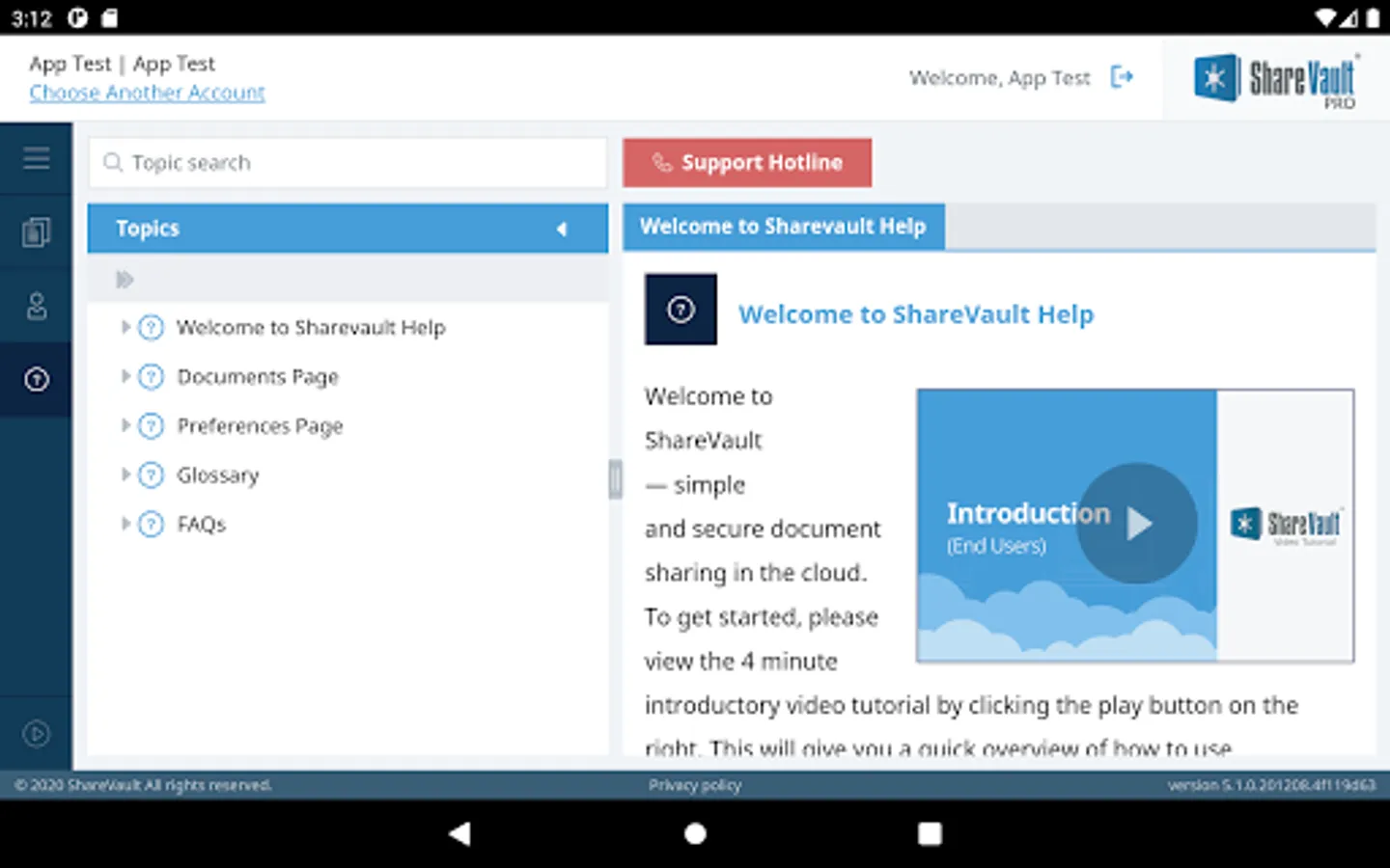 • Optimized for device screen size: On tablets, the application takes advantage of the device's larger screen size by including the full ShareVault functionality, including a split screen category pane and file list with thumbnails, for improved user experience. On phones, the app downgrades elegantly to fit the reduced screen size of smaller devices by eliminating the split screen display, thumbnails, Q&A and much of administrator functionality available on tablets.