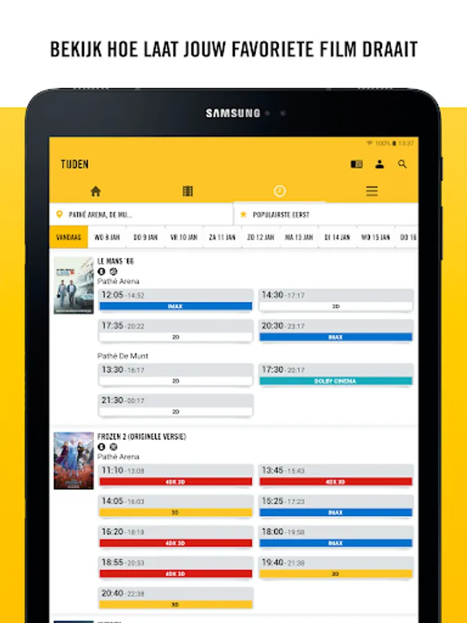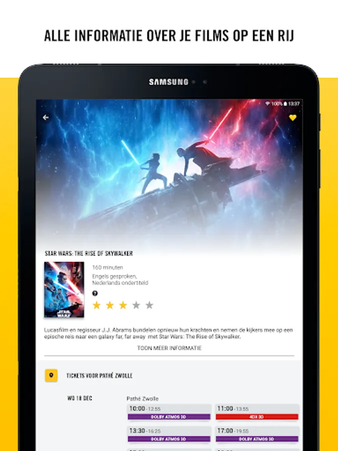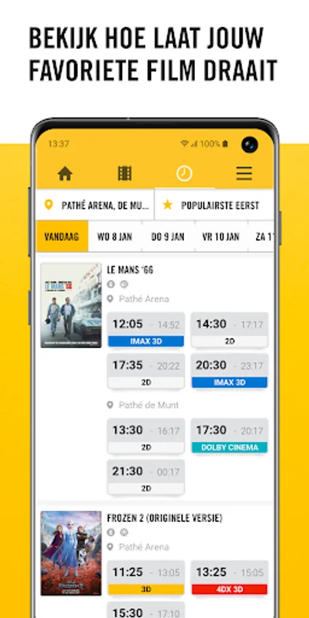 With the Pathé app you always know which films are currently running in all Pathé cinemas in the Netherlands.