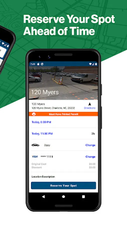 • Reserve parking spots ahead of time to save time and money