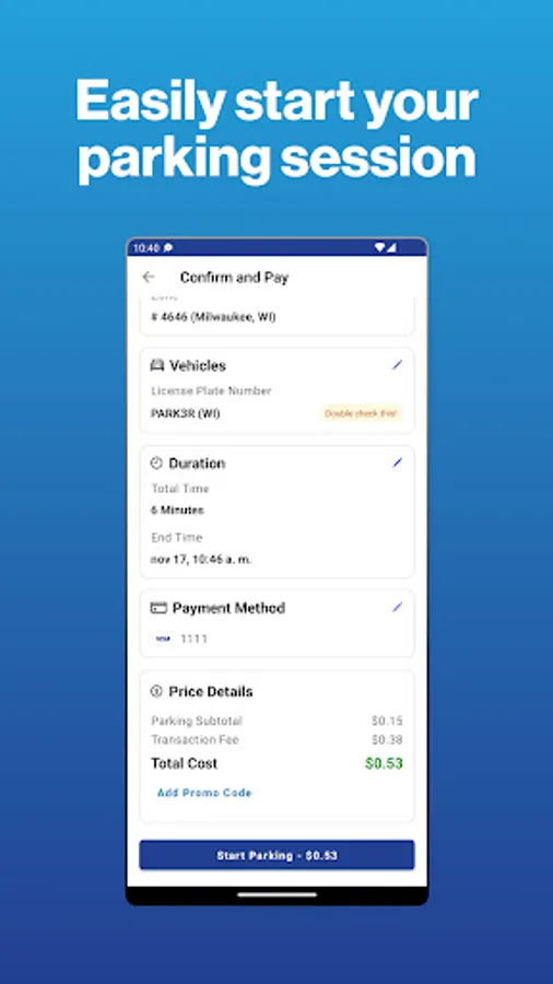 • Add your method of payment and start using the MKE Park