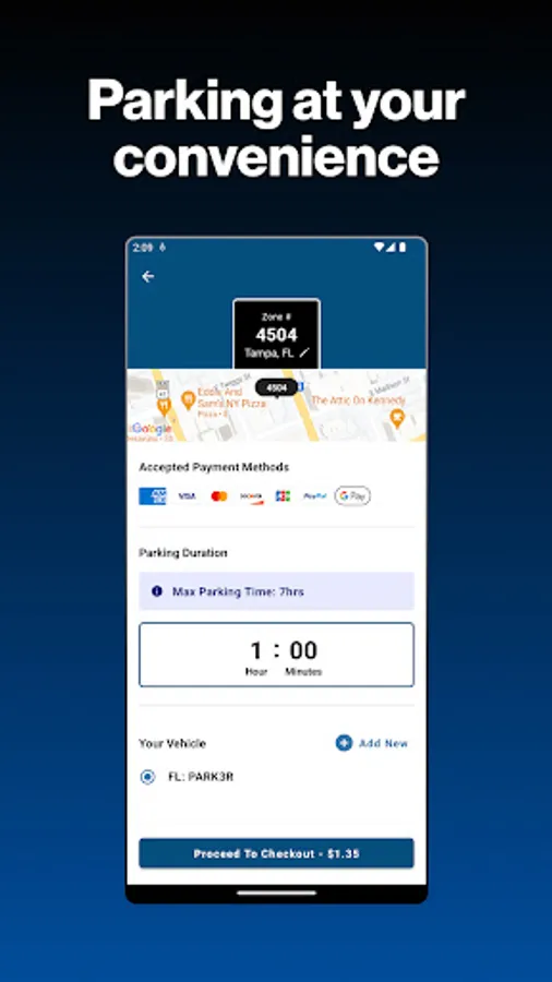 The 717 Parking app, powered by ParkMobile, provides a convenient way to pay for parking in Tampa, St. Petersburg, and Clearwater, Florida, using your mobile device. Registering is free and takes less than two minutes to join. The 717 Parking app takes the stress out of parking. No more searching for coins. No worries about an out-of-service parking meter. With the 717 Parking app, starting your parking session takes just a few seconds. You can use the 717 Parking app in over 500 other cities across the country, including New York, San Francisco, Washington, D.C., Atlanta, Chicago, Miami, New Orleans, Dallas, St. Louis, Minneapolis, Pittsburgh, Philadelphia, and more.