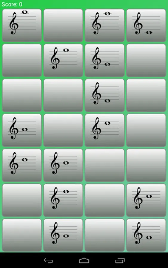 TwinNotes is a concentration-like game that teaches to recognize music notes by ear and improves your tonal memory. Click on an empty card to hear music tone. A yellow border appears around it. Find a card with a note sign that matches this tone and click on it. If tones matches, pair of cards disappears. If not, red border appears around both cards for 3 seconds. Continue until there are no cards on the screen.