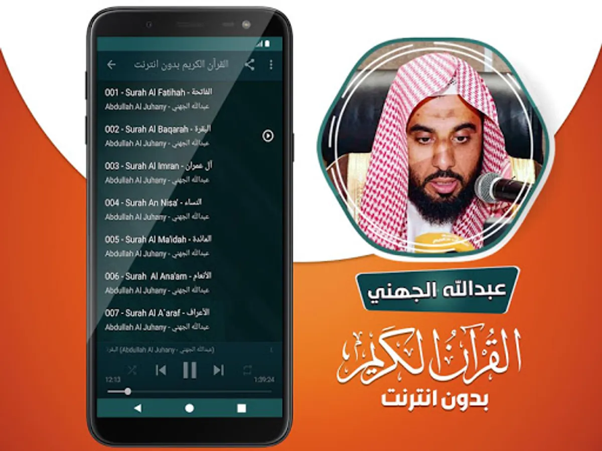 🔹 The Holy Quran application contains the voice of the reciter Abdullah Bin Awad Bin Fahd Al-Dhabiani Al-Juhani, listening to the surahs of the Qur’an without internet and it is characterized by this application for free recitation of the Qur’an.