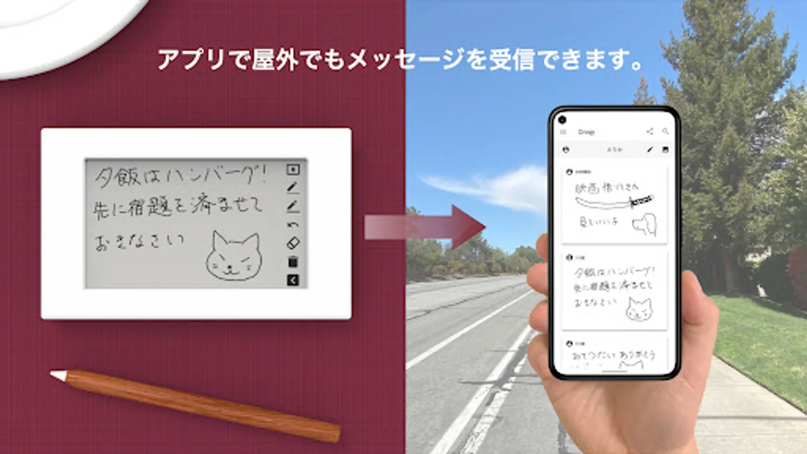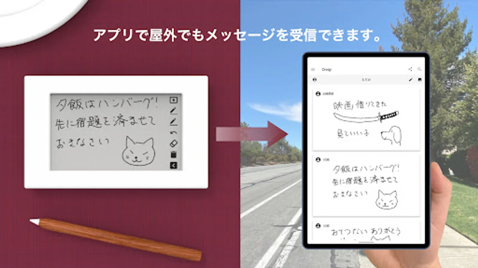 Do you convey your feelings to the other party just by entering characters? Croqy is a new communication device that can convey feelings to the other party like a hand-drawn memo. With the app, you can see your messages even when you're on the go.
