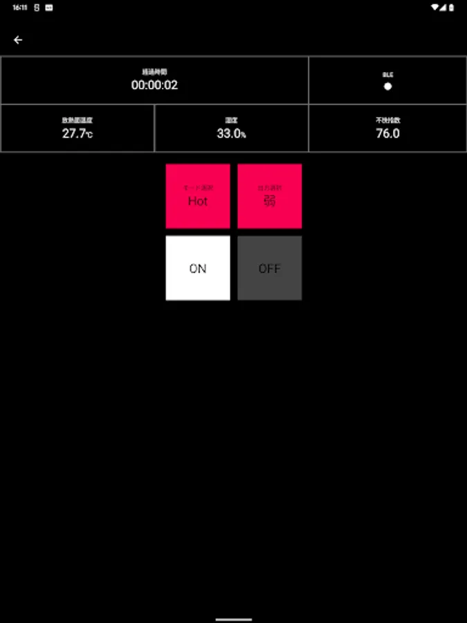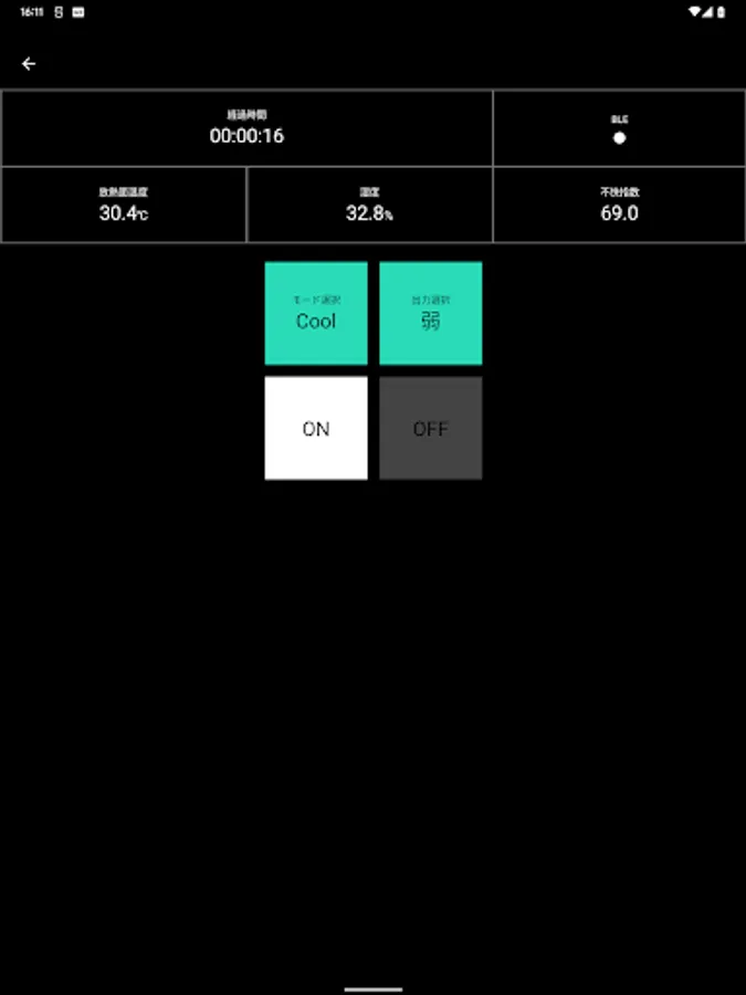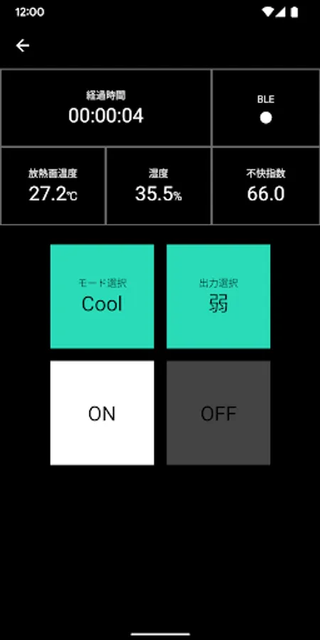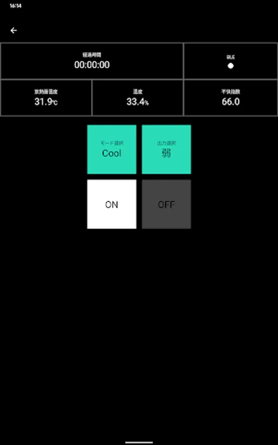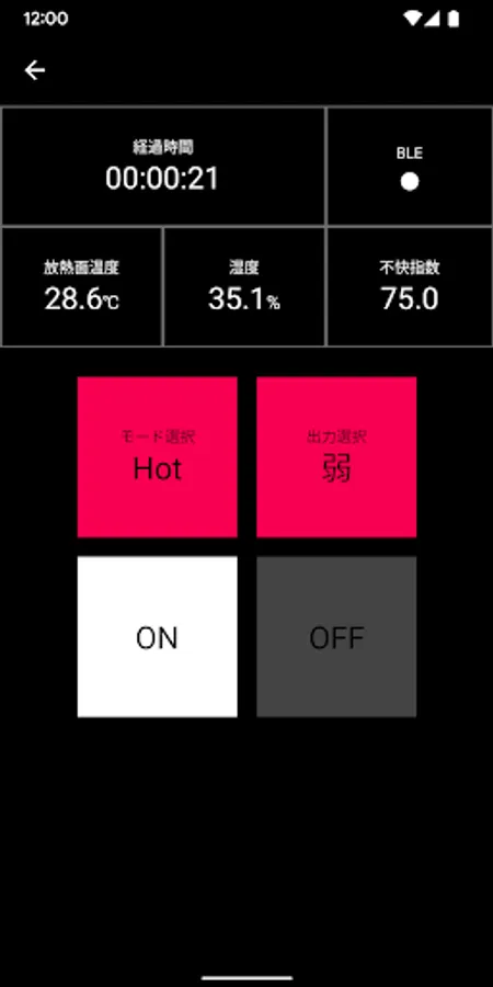 A smartphone with this app is connected to the Pebble Feel, a personal air conditioner via Bluetooth, switching between heating/cooling and intensity is available.