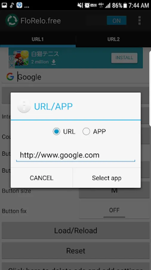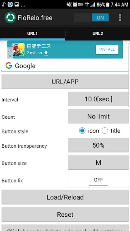 Display a floating button that allows automatic reloading by designating a browser.