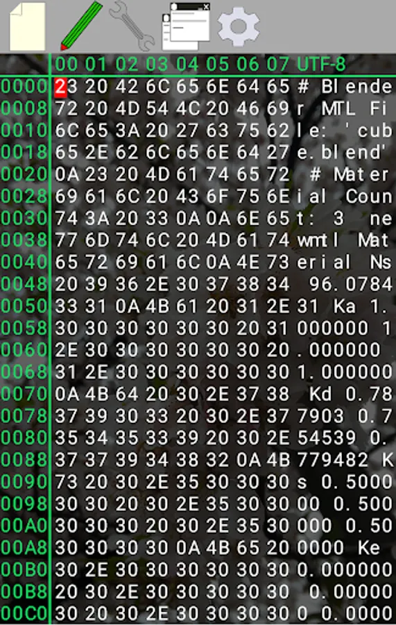 Surprisingly or of course, there are few binary editor apps, so let's make it! I made it with glue.