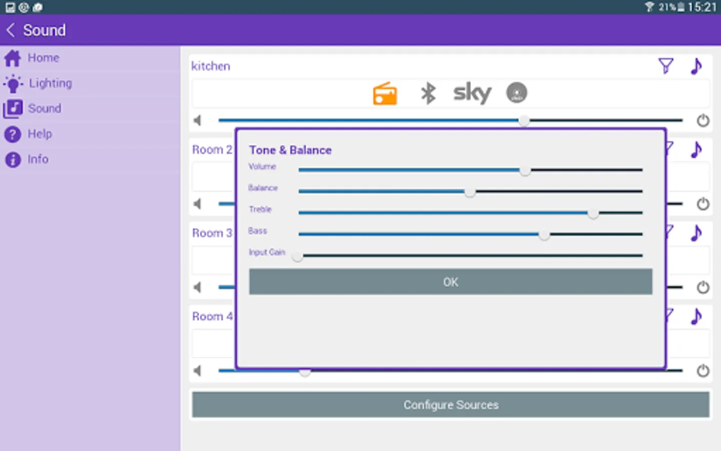 Individual Room/Zone control. Listen to the radio in the kitchen, stream your favourite playlist from your phone in your bedroom and even relax to music in the garden, all of which can be controlled from your android handset or tablet from anywhere in your home.