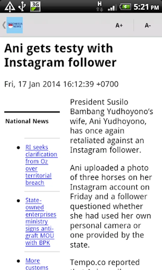 Antara News, Bali Post, Berita Jawa Timur, Bisnis.com, Detikcom, Inilah, Jakarta Post, JPNN, Kompas, Liputan 6, MetroTV, Okezone, Pikiran Rakyat, Rakyat Merdeka Online, Republika Online, Suara Merdeka, Tempo.co, Viva News and many more