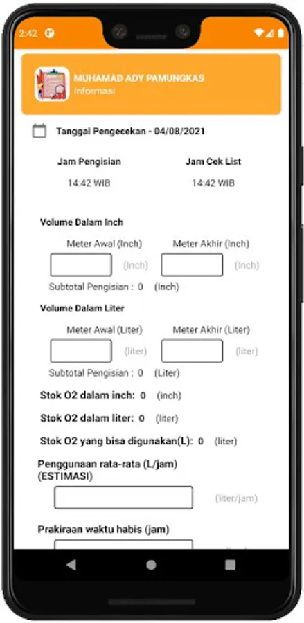 The Periodic Inspection Form application functions to digitize the manual inspection form for filling and availability of oxygen gas into the Android digital version