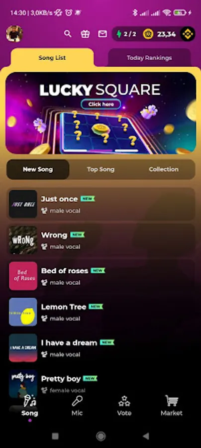 Sing&earn: After recording, A.I will evaluate and grade user's singing. From this grade, you can trade into different rewards.