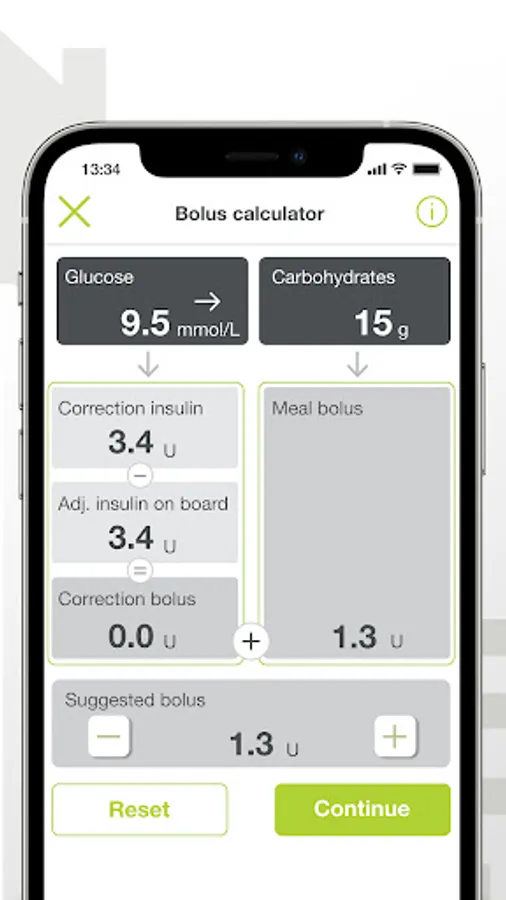only available with compatible pumps). The app offers an intuitive bolus suggestion calculator with integrated insulin on board