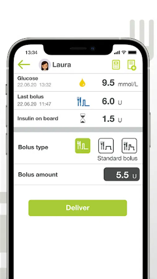 Pump users benefit from discreet and convenient bolus delivery from the smartphone (standard, extended and combination bolus;