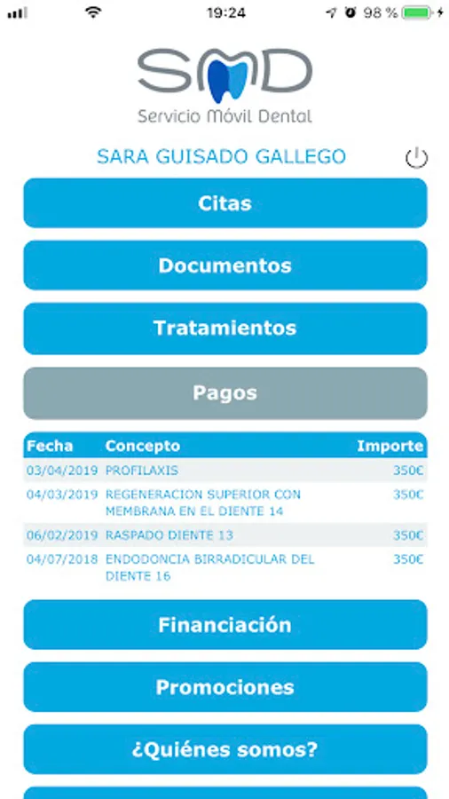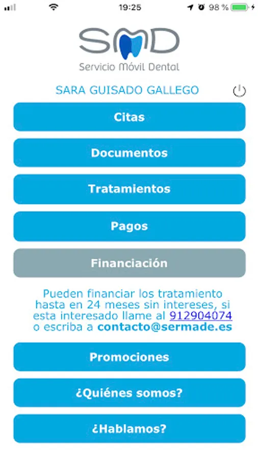 Application for access and control of your data at the Sermade Dental Clinic.