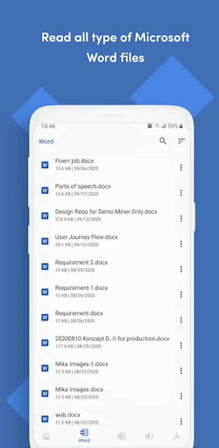 The Office Reader is a free app that lets you read and view Word, Excel, PowerPoint, PDF, RTF, HTML, MD, EML, MSG, and eBook documents offline.